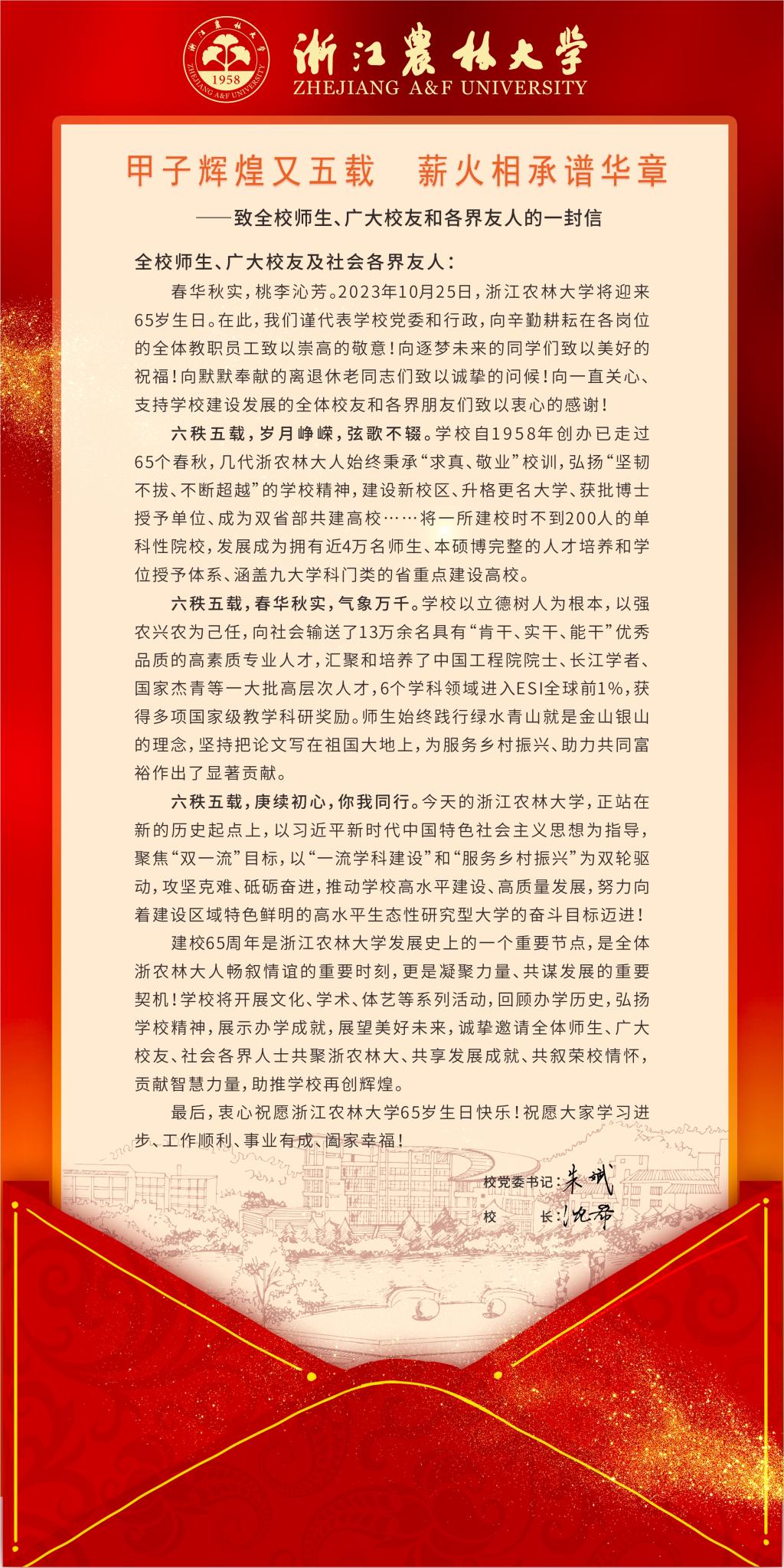 【慶祝建校65周年】致全校師生、廣大校友和各界友人的一封信