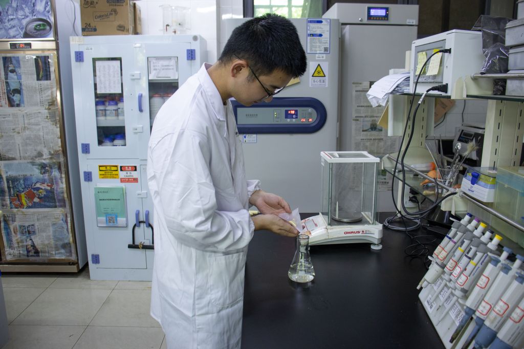 學7二樓的實驗室里,林學223班的江菲正在進行擴藻和接藻。對她而言,暑假是個難得的實驗機會,因為一開始培養的藻類總是死掉,一直培養到學期末才終于有存活下來的,正好利用暑假這個時間繼續推進研究。超凈臺、離心機、顯微鏡,成為了她這個暑假里打交道最多的“朋友”。