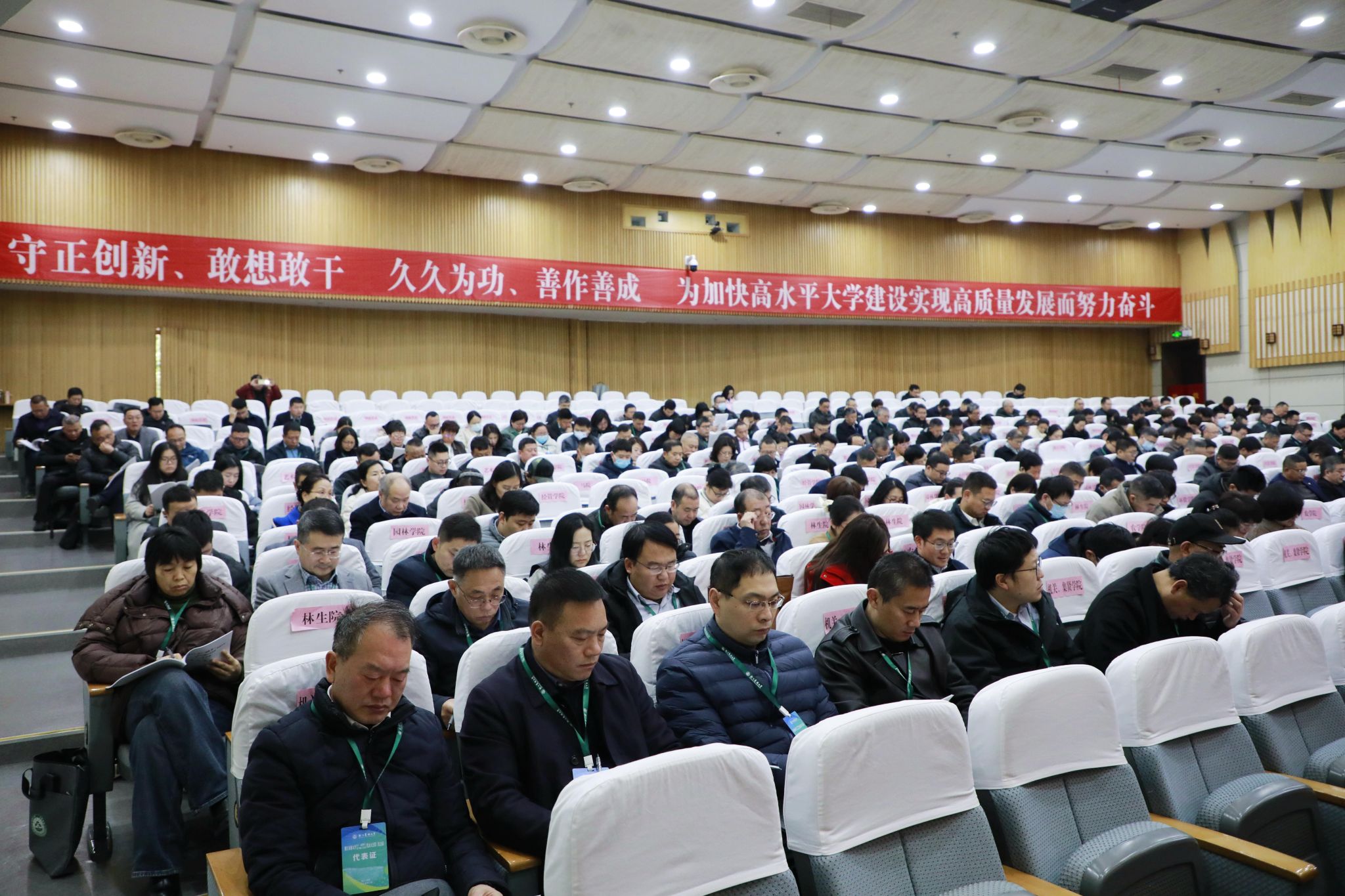 報告全面總結(jié)了學(xué)校2024年主要工作,部署了2025年重點工作。報告指出,一年來,學(xué)校以習(xí)近平新時代中國特色社會主義思想為指導(dǎo),深入學(xué)習(xí)貫徹黨的二十屆三中全會精神和習(xí)近平總書記考察浙江重要講話、視察學(xué)校重要指示和回信精神,全面落實省委十五屆五次全會部署要求,全校師生團結(jié)奮進,奮力推進高水平大學(xué)建設(shè),取得了一個又一個振奮人心、鼓舞士氣的豐碩成果:高質(zhì)量完成本科教育教學(xué)審核評估工作;教師教學(xué)創(chuàng)新大賽實現(xiàn)國家獎歷史性突破;成功獲批森林食物資源挖掘與利用全國重點實驗室;生物學(xué)與生物化學(xué)學(xué)科領(lǐng)域新晉ESI全球前1%,植物與動物科學(xué)進入全球前2‰,環(huán)境/生態(tài)學(xué)進入全球前3‰;基礎(chǔ)設(shè)施提質(zhì)工程建設(shè)全面推進;成立全國高校首個“千萬工程”研究院;全面深化全省高校黨建工作示范高校建設(shè);想方設(shè)法提升教職工待遇。