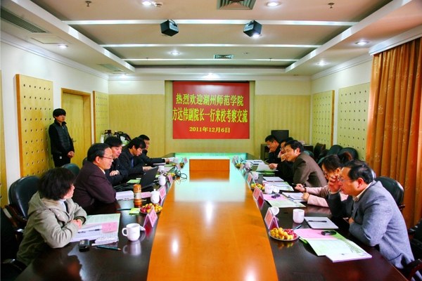 湖州師范學院院辦、組織部、科技處、人事處負責人,以及我校校辦、組織部、人事處負責人參加了座談。