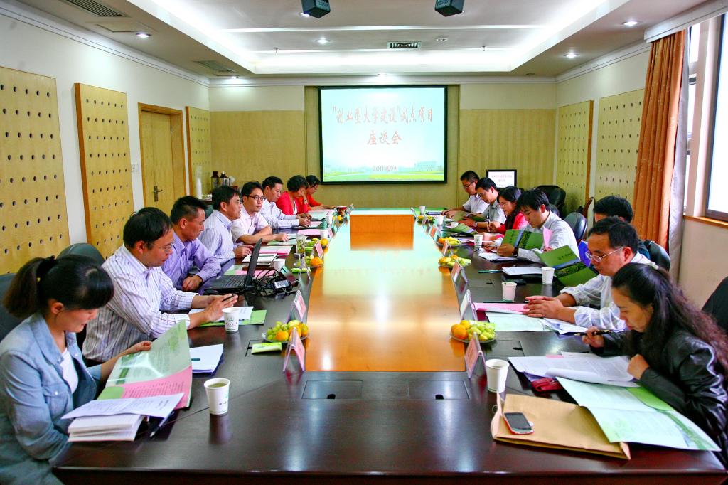 浙農(nóng)林大新聞網(wǎng)訊 9月26日下午,全省教育體制改革試點(diǎn)“創(chuàng)業(yè)型大學(xué)建設(shè)”工作座談會在我校召開。會議由浙江省教育體制改革領(lǐng)導(dǎo)小組辦公室組織,省教育廳政策法規(guī)處陳峰處長主持。
