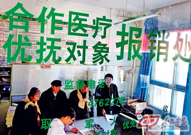2011年3月4日,山東鄒平縣碼頭鎮村民在新農合醫藥費報銷處報銷。中國新農合制度框架已基本建立,管理體制和運行機制日趨完善,運行平穩。2011年,全國參合人口8.32億,參合率97.48%。新農合制度產生了“農民得健康、衛生得發展、政府得民心、社會得和諧”的良好效應。