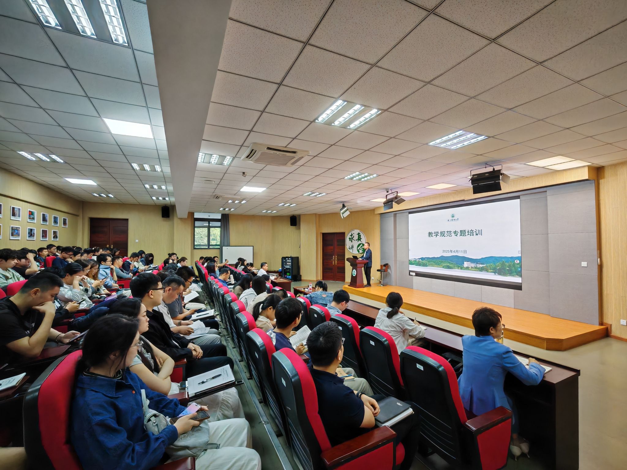 教務(wù)處相關(guān)負(fù)責(zé)人從“規(guī)范”與“能力”雙維度切入,結(jié)合青年教師成長需求,針對課程教學(xué)、課程考核、監(jiān)考工作、課程成績、畢業(yè)論文等五個方面詳細(xì)介紹了教師教學(xué)工作規(guī)范,系統(tǒng)解讀了學(xué)校的教學(xué)管理規(guī)章制度,并就如何通過練就教學(xué)基本功、規(guī)范教師禮儀、增強課堂互動等舉措提升教學(xué)能力提出具體建議。