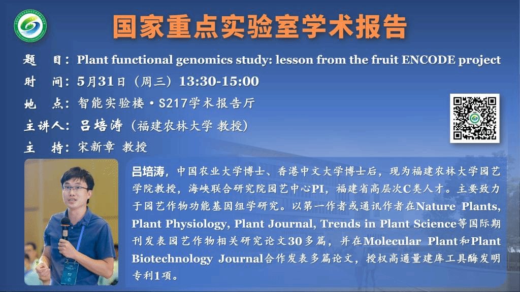 講座預告:Plant functional genomics study: lesson from the fruit ENCODE project