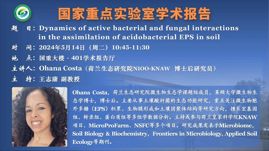 講座預(yù)告:Dynamics of active bacterial and fungal interactions in the assimilation of acidobacterial EPS in soil