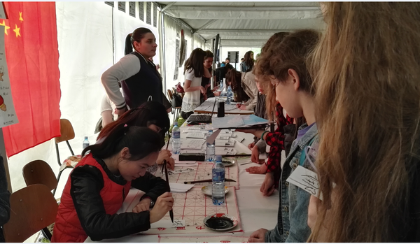 此次活動中,孔子學院的展位分為書法贈名區、筷子體驗區和跳棋挑戰區三部分。書法贈名區,中國老師輪番上陣,用毛筆為學生市民們寫下他們的中文名字。據不完全統計,兩天內,孔院共為近4000名市民和學生書寫中文名字,受到組織方和廣大學生市民的高度贊譽。筷子體驗區,體驗者用筷子夾圍棋子,夾夠十個便可以拿到一個漢辦贈送的中文書簽。贈送書簽時,中國老師順便把書簽上的常用漢語教會體驗者,例如“你好”、“謝謝”、“再見”、“歡迎”等,寓教于樂,效果良好。跳棋挑戰區,圍觀者可以挑戰中國老師,也可以兩個人分成一組,相互競技。